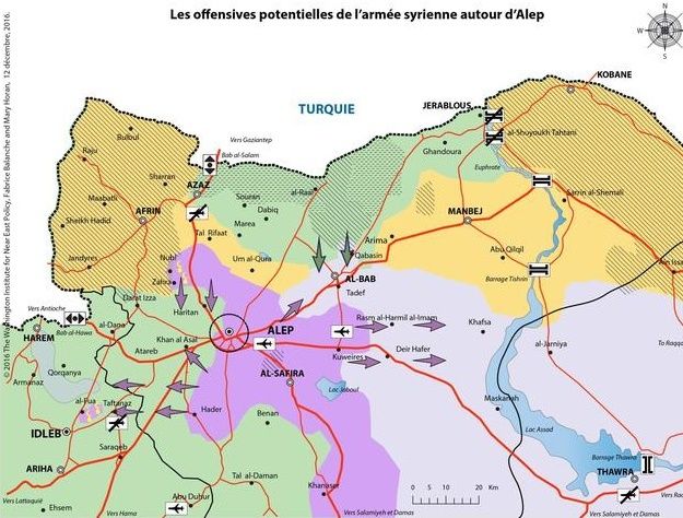Et après ? Une intéressante analyse de Fabrice Balanche a paru dans FigaroVox, trop pertinente et honnête pour rester plus de quelques dizaines de minutes en une (l'ambassade du Qatar a dû passer un petit coup de fil à Dassault...) Il y étudie les différents scénarii possibles - offensive vers Idlib (ouest), vers Raqqah (est) ou vers Deir Ez Zoor (via Palmyre) - et penche comme votre serviteur pour Idlib.